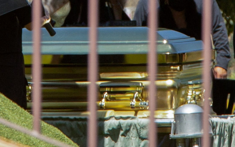 After a ceremony lasting about an hour, mourners — many wearing face masks to conceal their identities — followed the casket to the graveside.